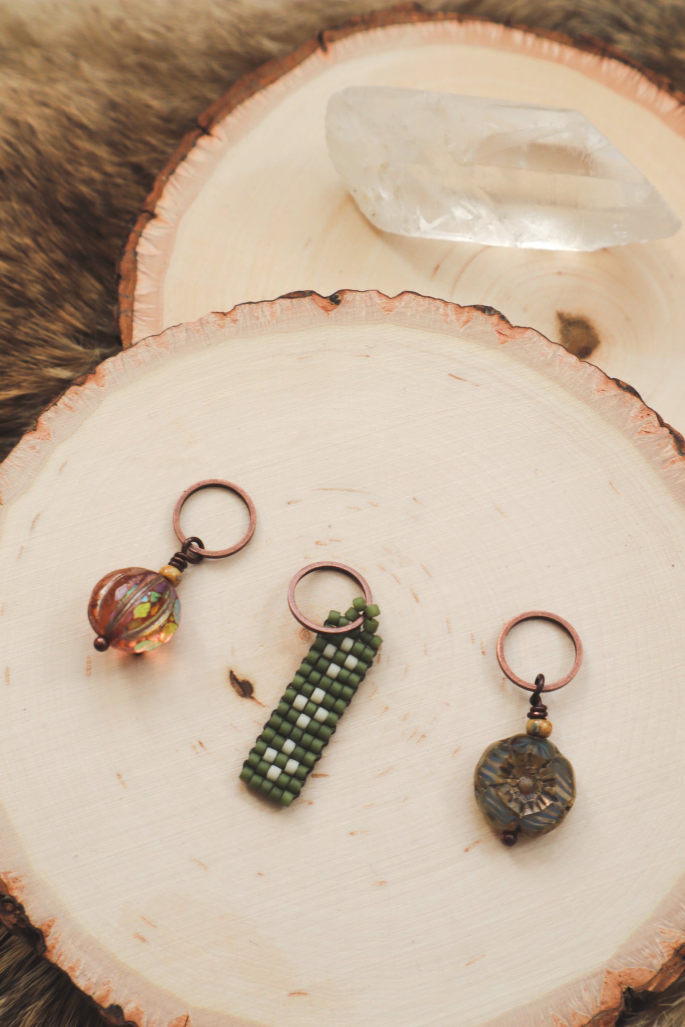 This listing is for one set of 3 Stitch Markers, featured in Month 4 of our Mystery Notion Subscription Club